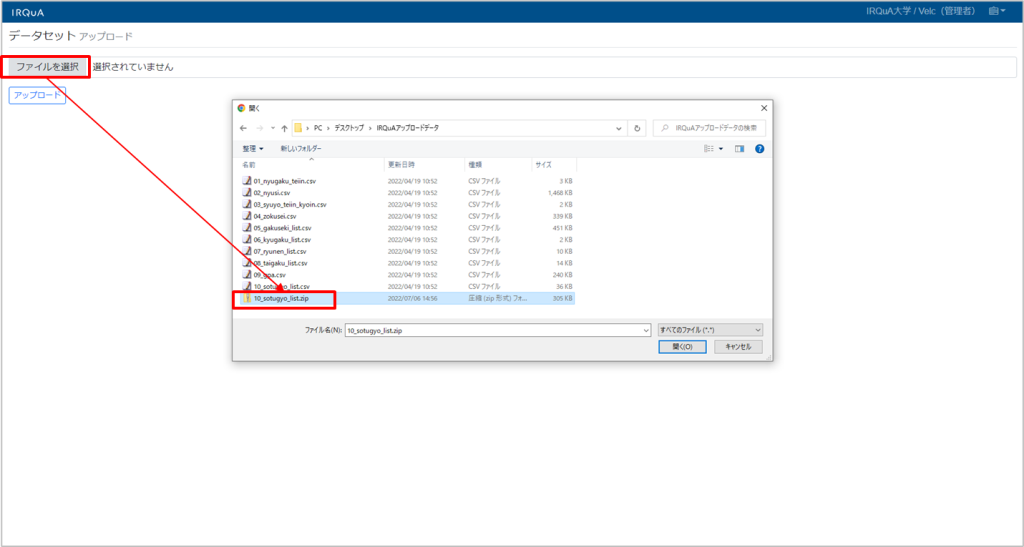 このページでは、IRQuAにCSVをアップロードする手順を説明しています。