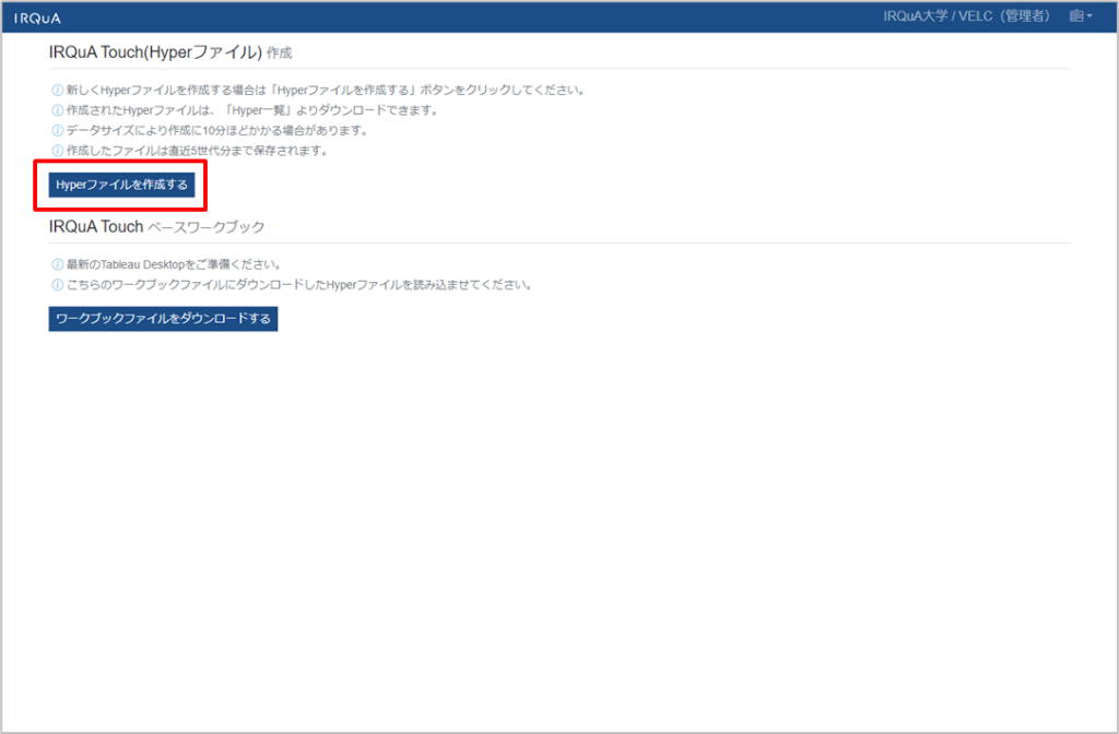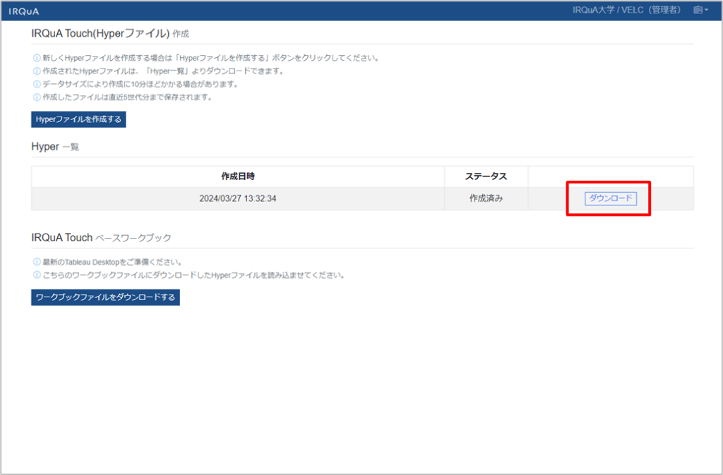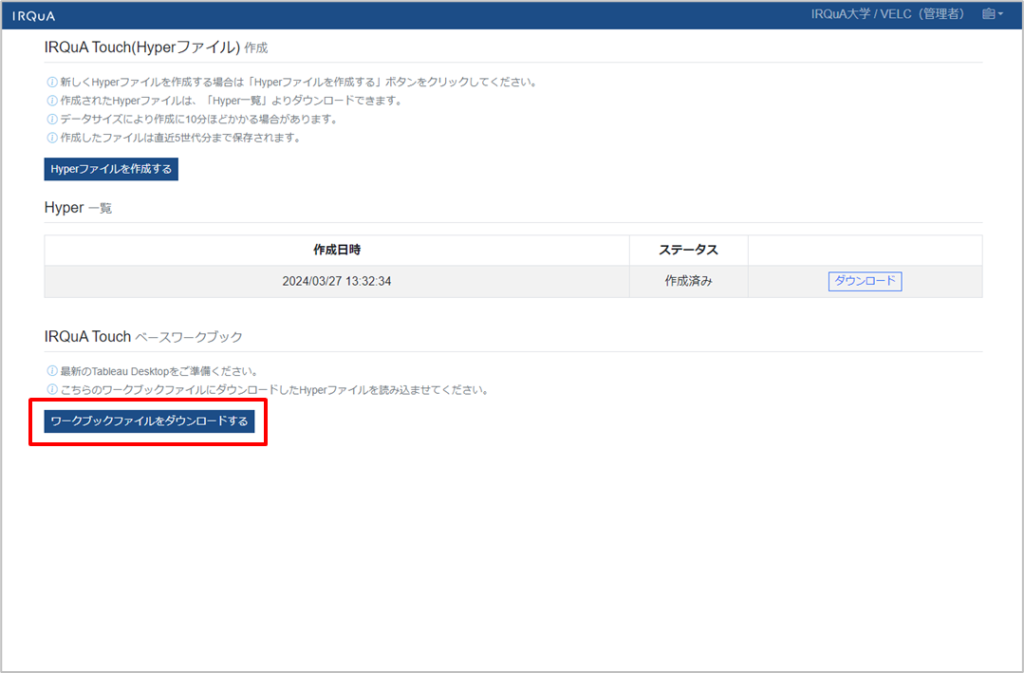 ワークブックファイルをダウンロードするから、IRQuA Touchベースワークブック(Tableau)をダウンロードします。