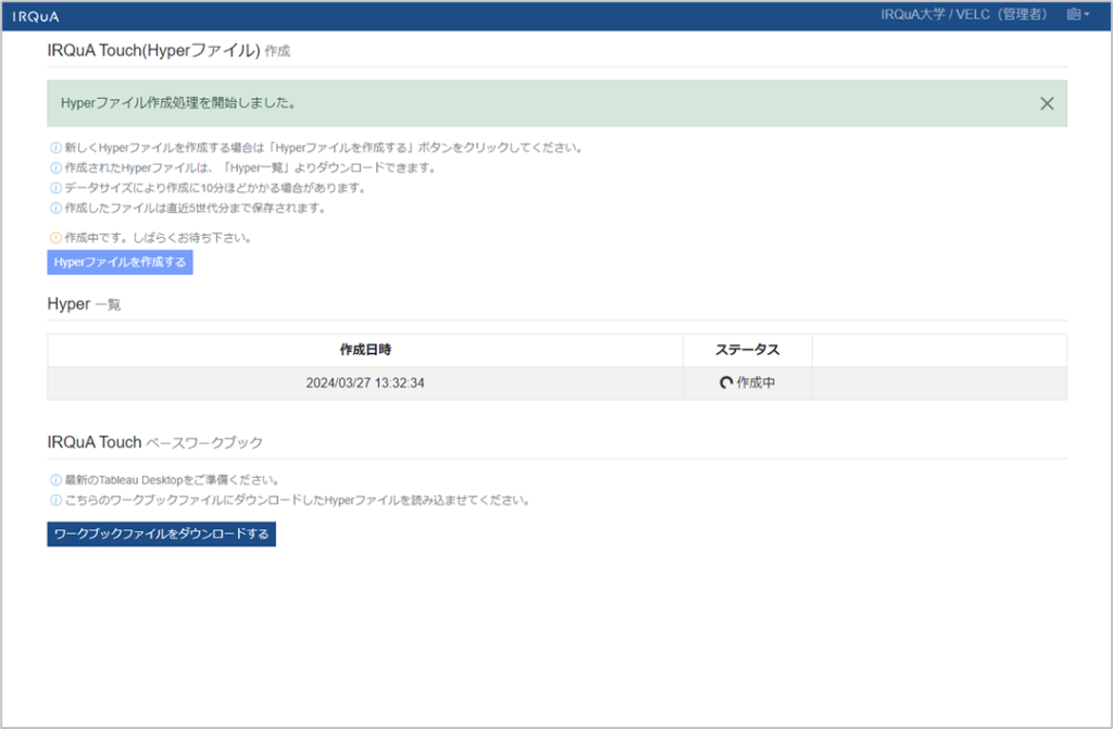 処理が完了すると、管理者宛てに「IRQuAHyperファイルを作成しました」という通知メールが届きます。(送信元アドレス:no-reply@irqua.jp)